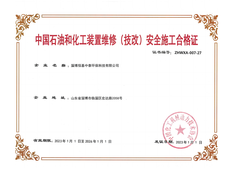 中國石油和化工裝置維修(技改)資質(zhì)證書