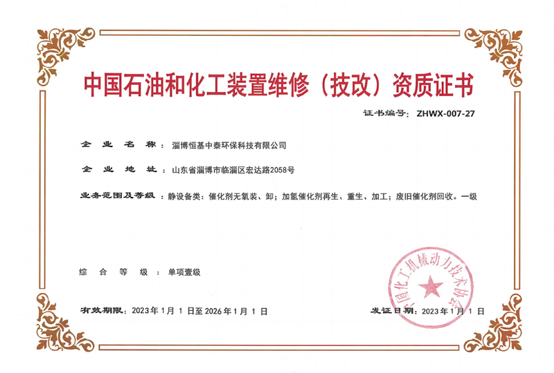 中國石油和化工裝置維修(技改)資質(zhì)證書
