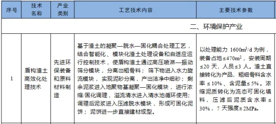 11月27日,國家發改委發布《擬納入<綠色技術推廣目錄(2024年版)> 的技術清單》?!肚鍐巍贩譃楣澞芙堤?、環境保護、資源循環利用、能源綠色低碳轉型、生態保護修復和利用、基礎設施綠色升級、綠色服務七個類別,共有113項技術入選,為各產業轉型升級提供了關鍵技術指引。其中,盾構渣土高效化處理技術為解決工程泥漿、盾構渣土減量化、資源化、無害化問題提供了有效途徑。