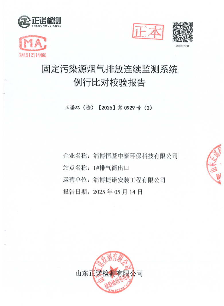 固定污染源煙氣排放連續監測系統例行比對校驗報告,2025年第二季度比對報告(點擊查看報告文件)